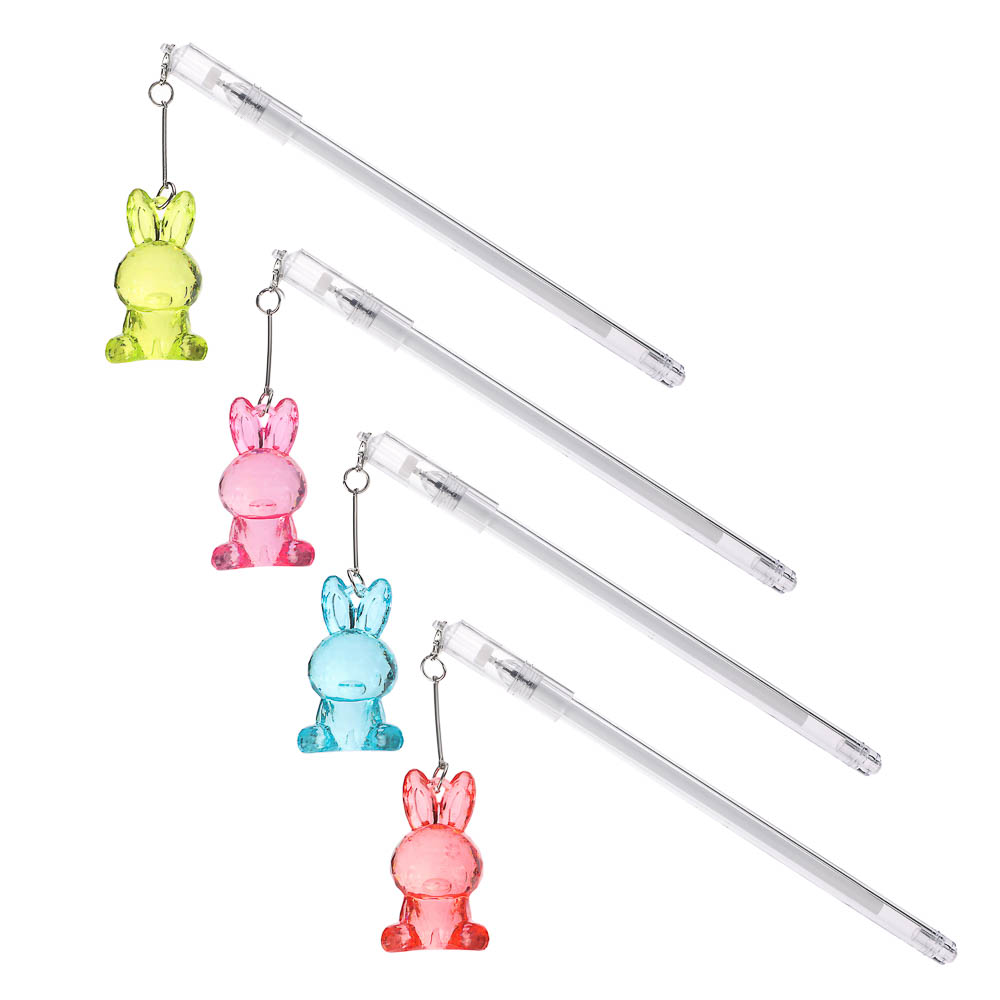 Ручка гелевая синяя, с подвеской - брелоком в форме прозрачного зайца, 4 цвета