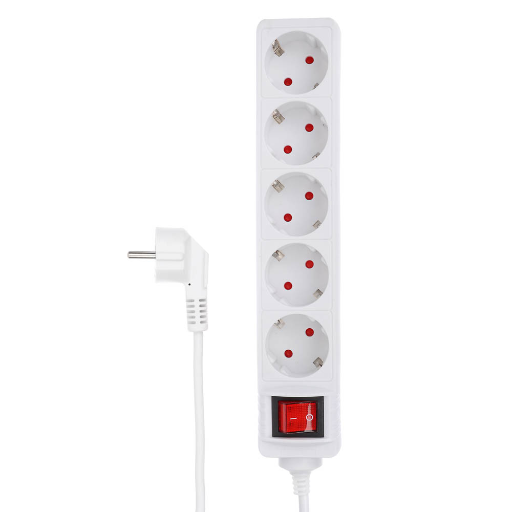 Универсальный электрический удлинитель с заземлением. Оснащен выключателем. Предназначен для нестационарного подключения потребителей к электрической сети переменного тока, на 5 евророзеток, с максимальной мощностью 3500Вт, длина шнура 3 метра.