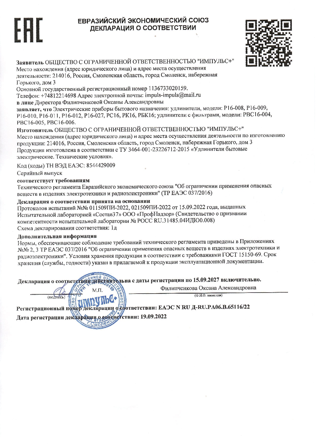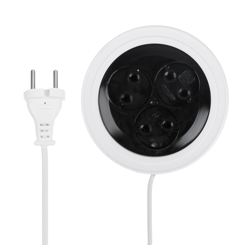 Удлинитель - рулетка без заземления. Предназначена для нестационарного подключения потребителей к электрической сети переменного тока, на 3 евророзетки, длина шнура 5 метров.