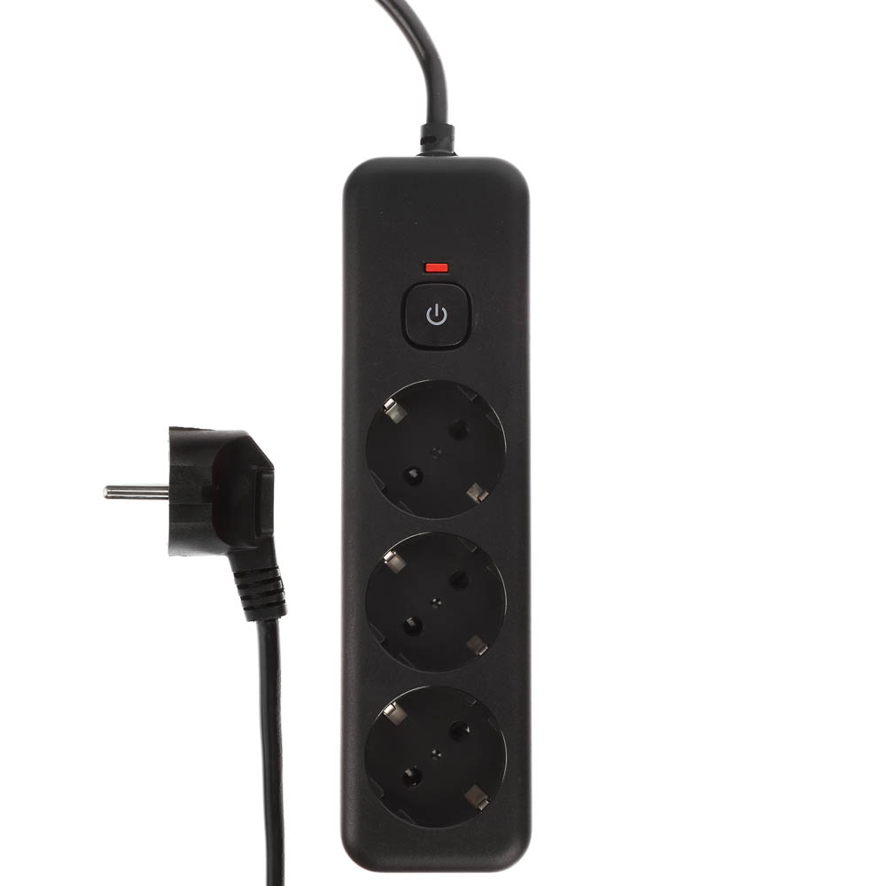 BY Удлинитель, сетевой фильтр Black 3 розетки, 3 м, выкл., 2500Вт, чёрный