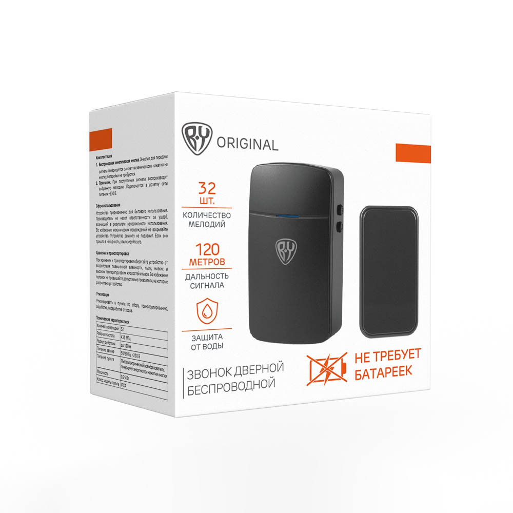 BY Звонок дверной электрический с кинетической кнопкой "Кинетик" (бат. не нужны), 230В, 38 мелодии