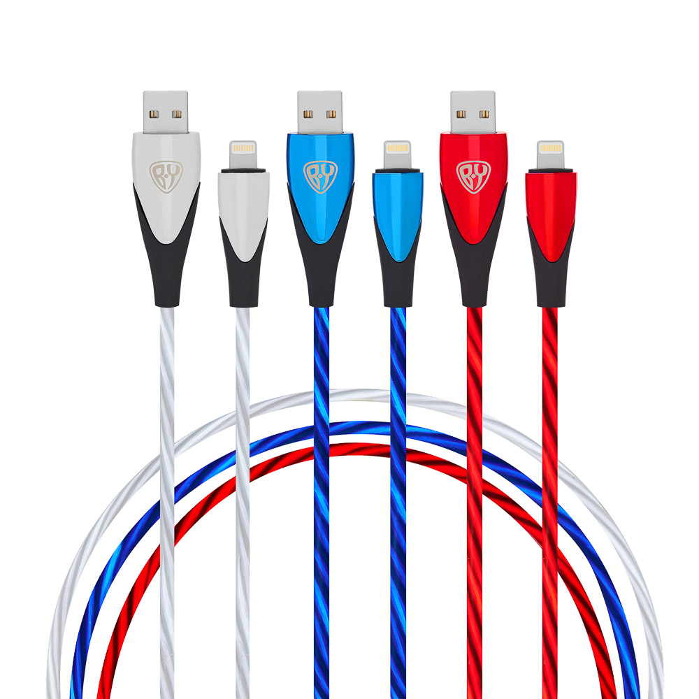 BY Набор кабелей для зарядки Светящийся, 3 шт. iP, 1м, 2.4А