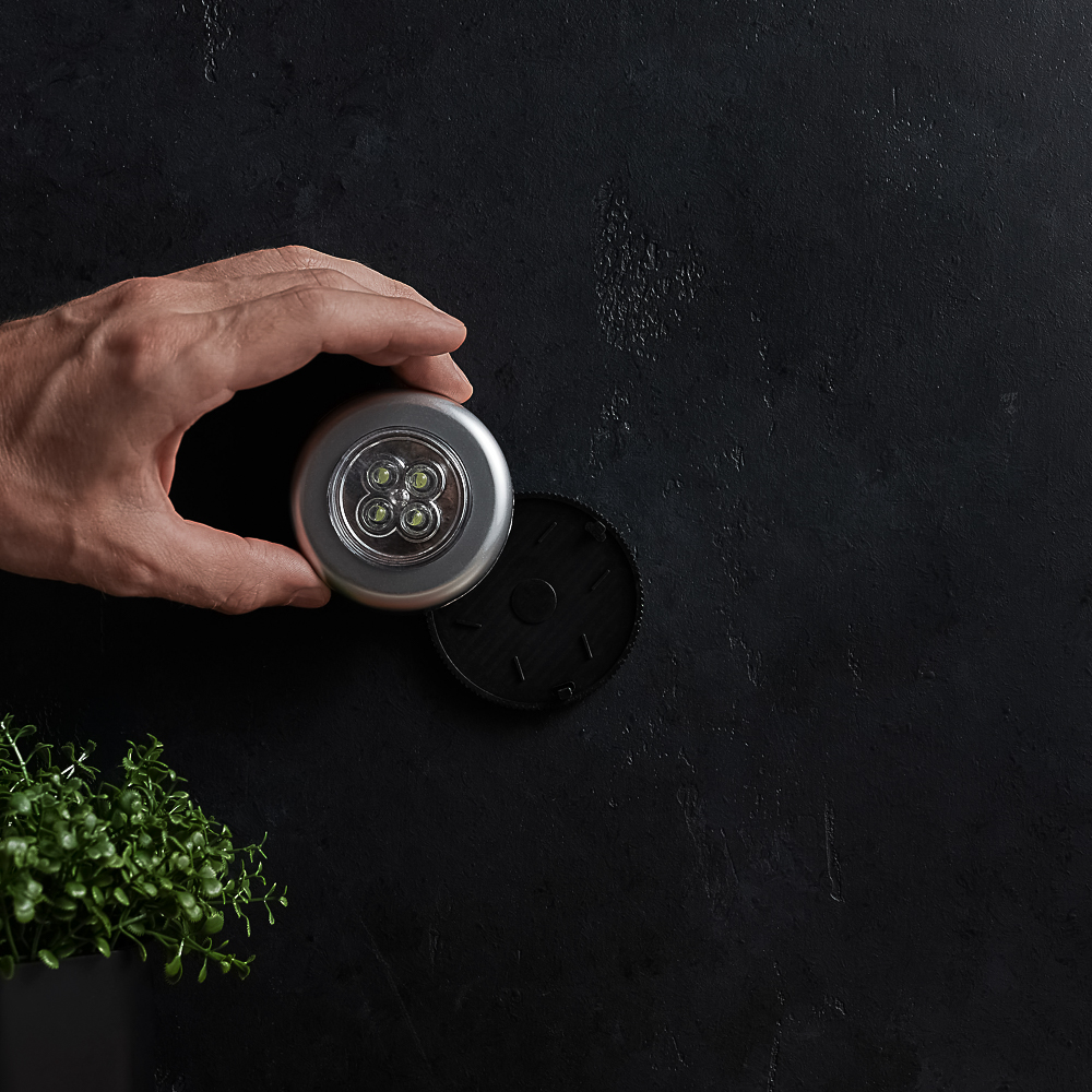 FORZA Светильник точечный нажимной, 6,5см, 3xААА, 4 LED, пластик