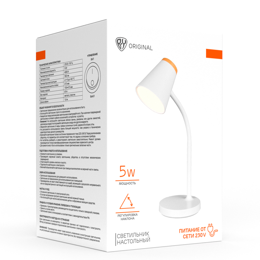 BY Светильник переносной настольный Элеганс,14LED, 5Вт, 300Лм,4000K,230В, кабель 1.6м, пластик,белый
