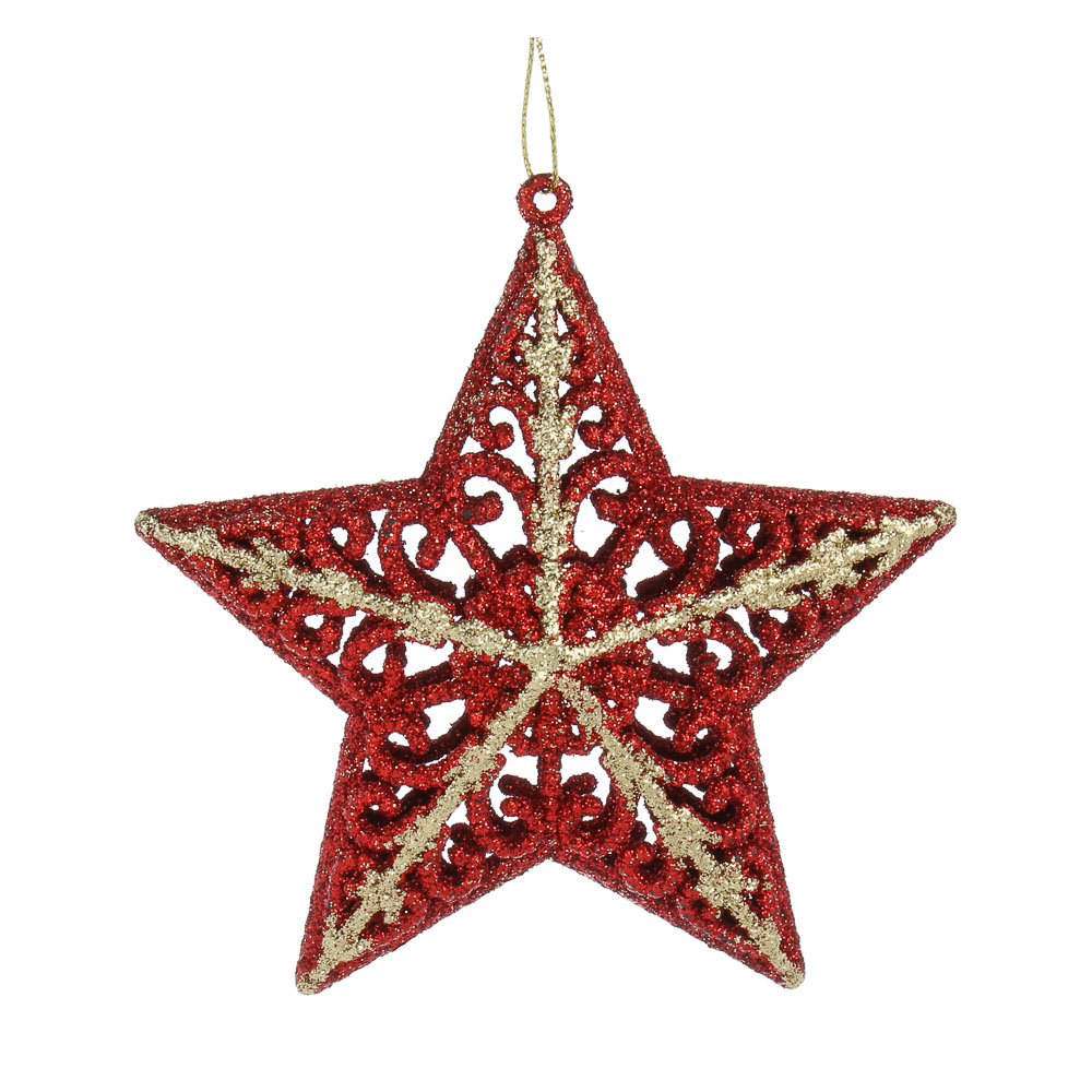 СНОУ БУМ Подвеска декоративная "Звезда" 12x12.5x4 см, пластик, глиттер, красный