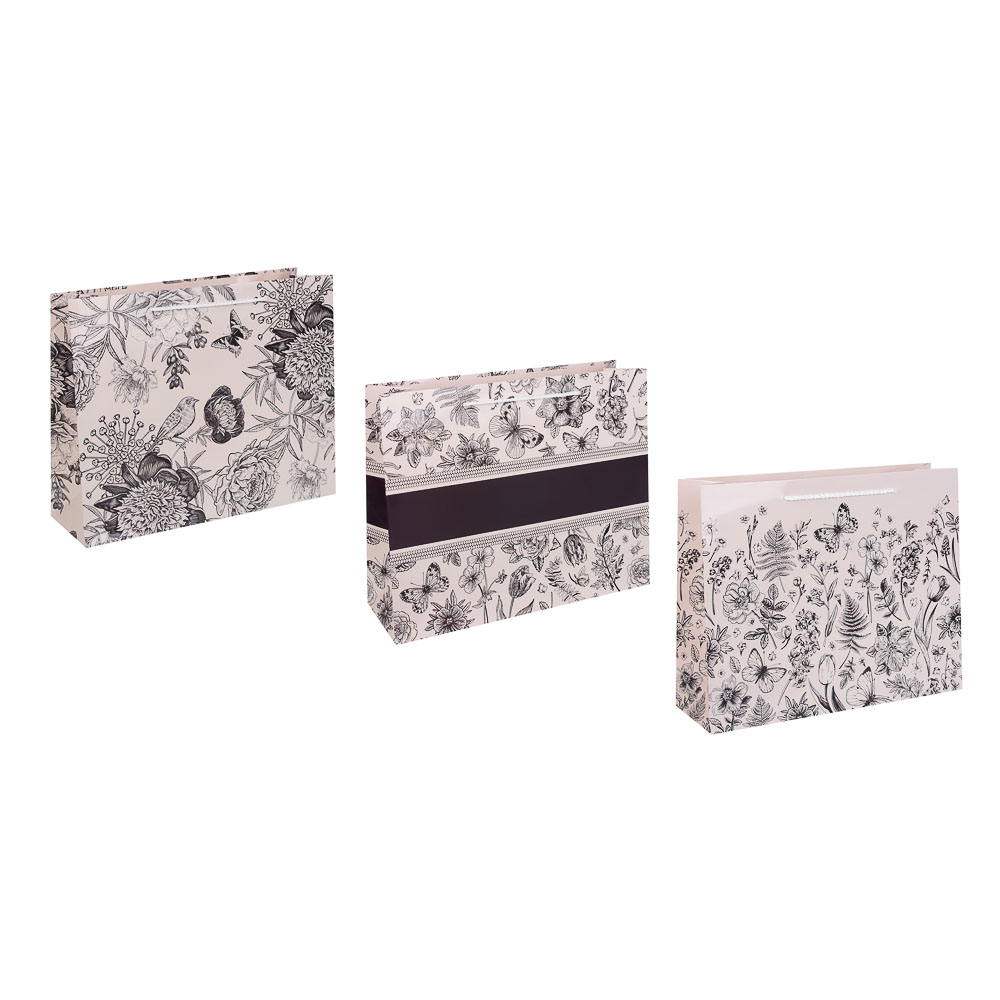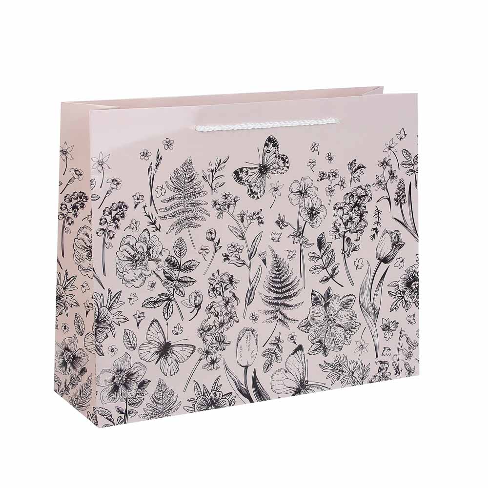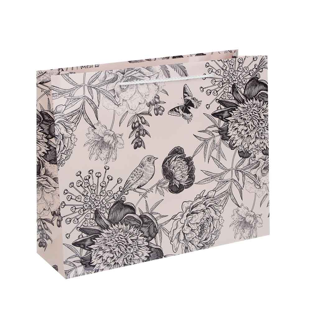 Пакет тм Fntastic подарочный с ручками, 32x26x10 см, бумага, арт. 23 – это премиальная упаковка для особенного подарка. Пакет имеет стильный дизайн с выразительным и в то же время деликатным цветочным принтом, выполненным в монохромной технике, смотрится лаконично и дорого. Плотный и прочный, хорошо держит форму и не мнется. Идеальный вариант для оформления подарка для женщины по любому поводу: по случаю дня рождения, 8 марта, юбилея и других знаменательных событий. Без труда вмещает набор косметики, парфюм, текстильный набор, сладости и любые другие подарки среднего формата. 3 дизайна в ассортименте.