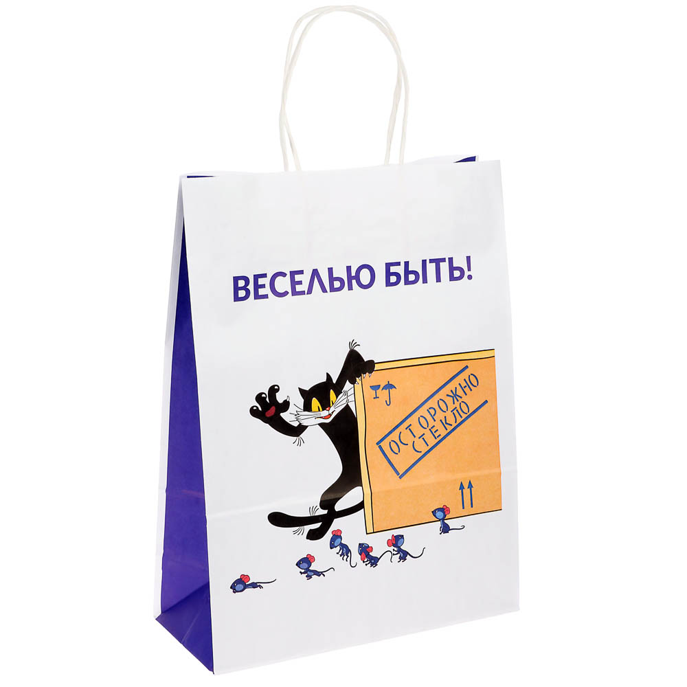 Пакет подарочный с кручеными ручками 24х10,5х32 см, «Котёнок по имени Гав. Веселью быть» внутри бел