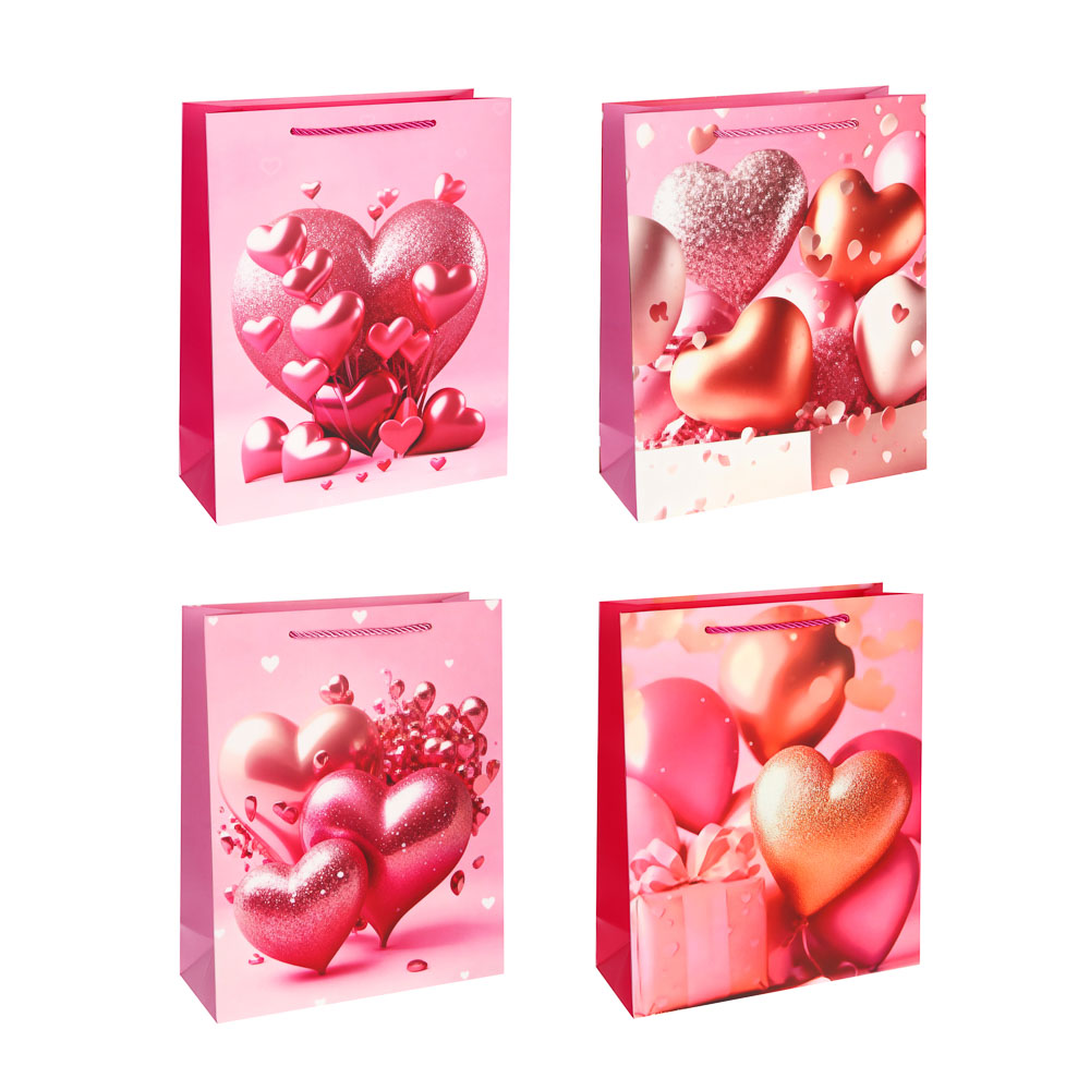 Пакет подарочный бумажный тм LADECOR L 26x32x10 см, "Сердце" арт 3, 4 дизайна