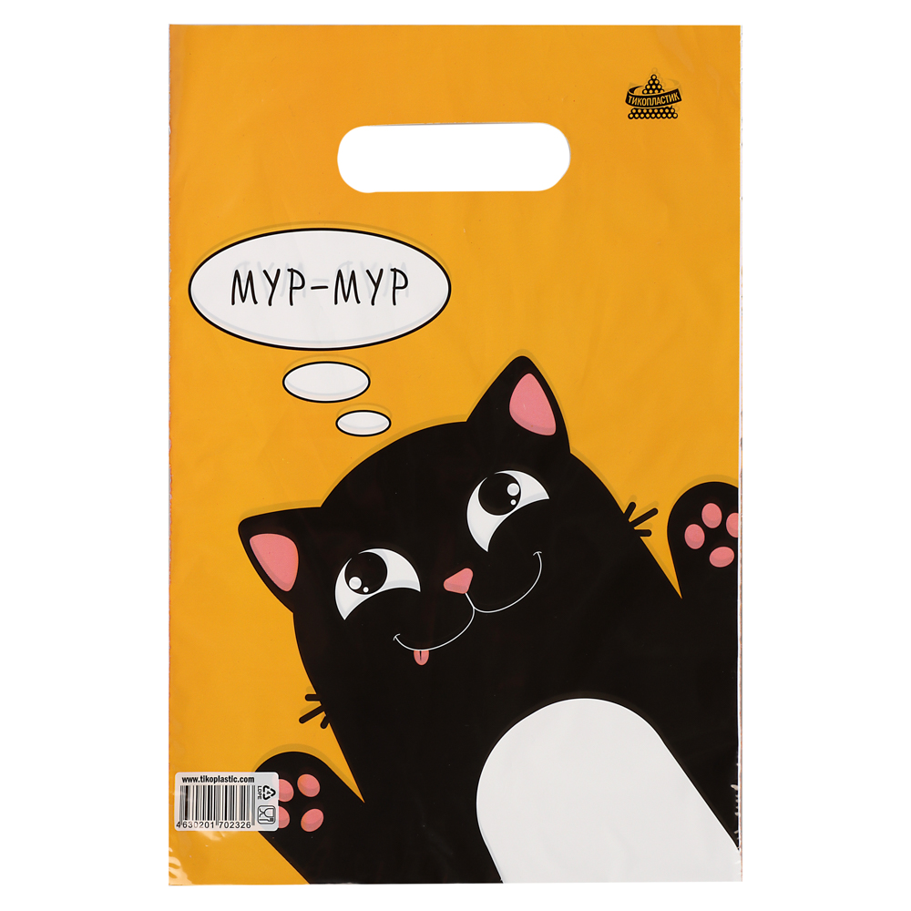 Пакет Мур-мур– это очаровательный аксессуар для всех любителей котиков и ярких акцентов! Изготовленный из прочного ПВД, пакет размером 30х20 см украшен забавным рисунком черного кота на солнечно-желтом фоне, что сразу поднимает настроение. Удобная вырубная ручка комфортно лежит в руке, не натирает даже при полной загрузке. Идеально подходит для небольших подарков, сладостей, косметики или повседневных мелочей.