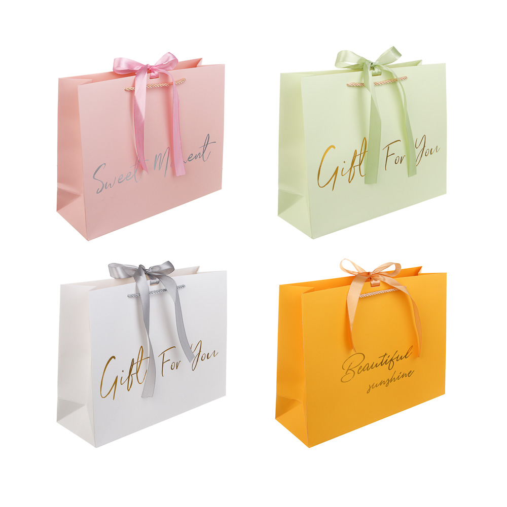 Пакет подарочный из высококачественной бумаги, 210 гр, с лентой, 32x26x11 см, 4 цвета