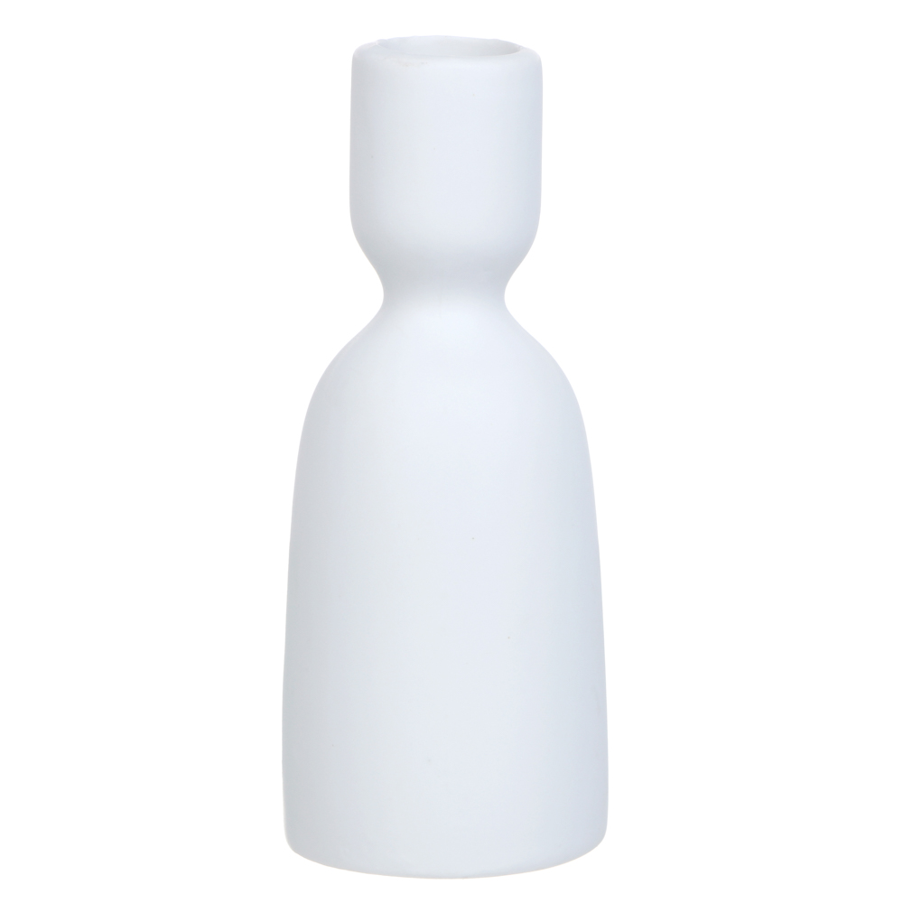 Керамический подсвечник размером 5,3х5,3х13,3 см белоснежного цвета имеет гармоничный плавный силуэт и лаконичный дизайн. Выигрышно дополнит интерьер спальни или гостиной, а также послужит для создания декоративной подсветки во время праздничного или романтического ужина. Изделие имеет устойчивое основание и удобное углубление для установки свечи, которое обеспечивает ей надежную фиксацию. Огнеупорная керамика не боится воздействия высоких температур.