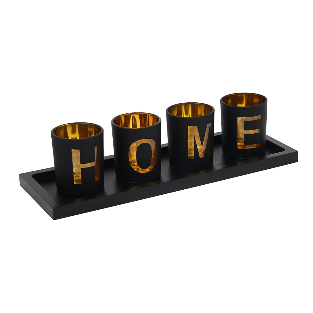 Набор подсвечников на подставке тм LADECOR 4 шт 6х6х7,5см, подставка 33,4х11,7х1,5см, стекло, дерево