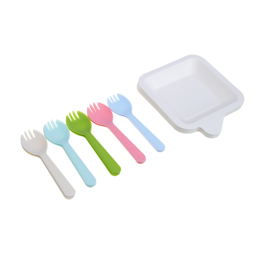 Набор посуды одноразовой, 11x13см, картон, пластик, 10 вилок-ложек, 10 тарелок