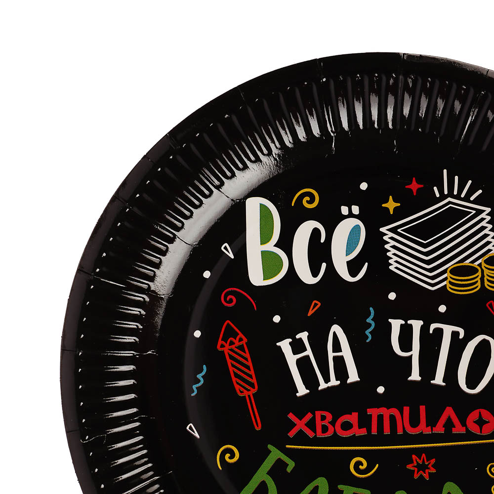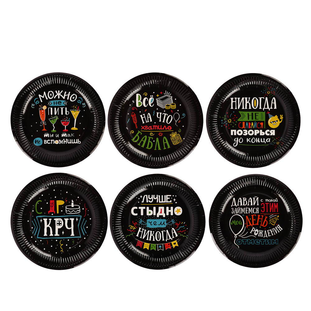 Набор бумажных тарелок Шутки на черном, 6 шт d=230 мм