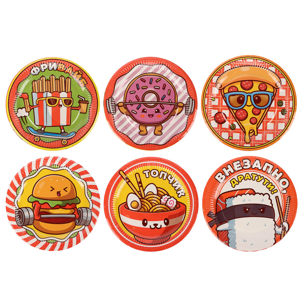 Набор бумажных тарелок Ожившая еда, 6 шт d=230 мм