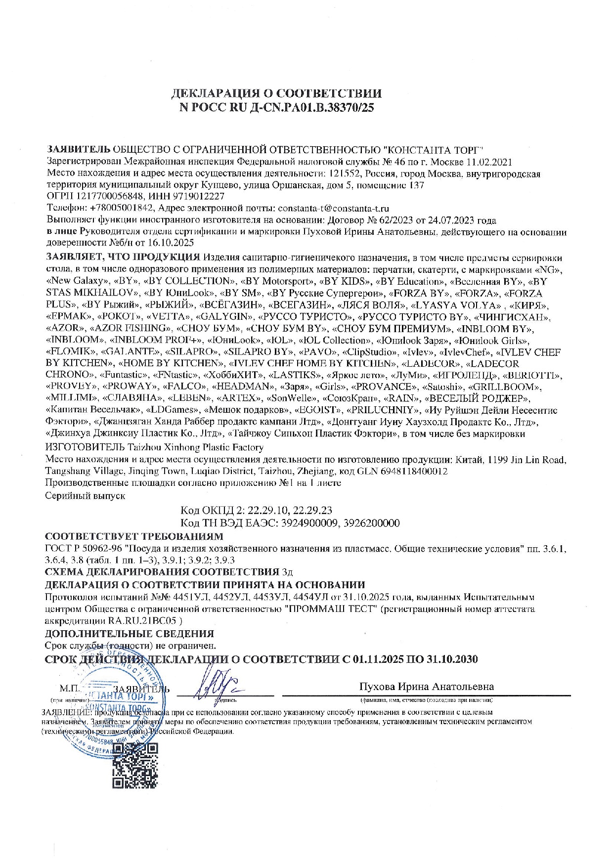Размер упаковки