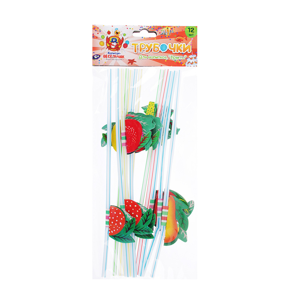 Капитан Весельчак Трубочки для напитков 12шт, 240x5мм, "Фрукты", цветные