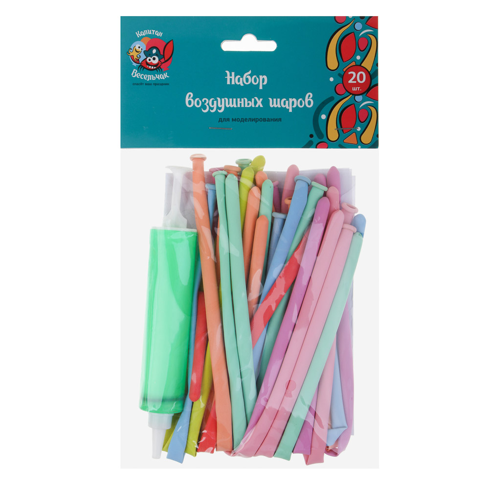 Капитан Весельчак Набор воздушных шаров для моделирования, насос, 20 шт, 30см, микс цв. макарун