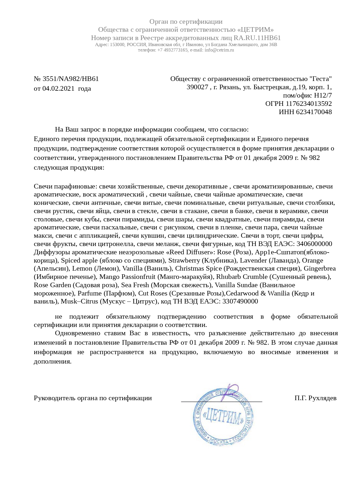 Свеча ароматическая |