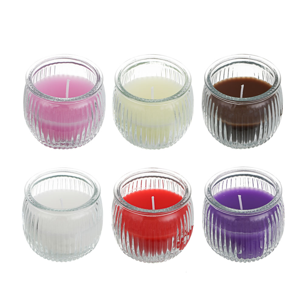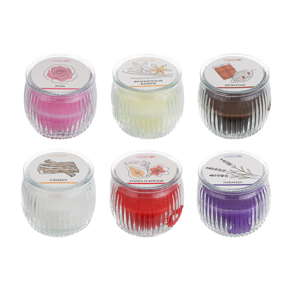LADECOR Свеча ароматическая в стеклянном подсвечнике, парафин,7x6,5 см, 6 цветов