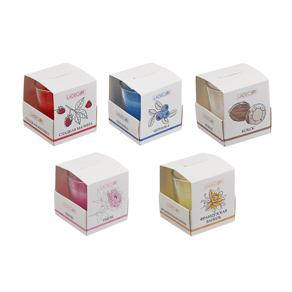 LADECOR Свеча ароматическая в стеклянном подсвечнике, в подарочной коробке, 4,5x4,5 см, 6 видов.