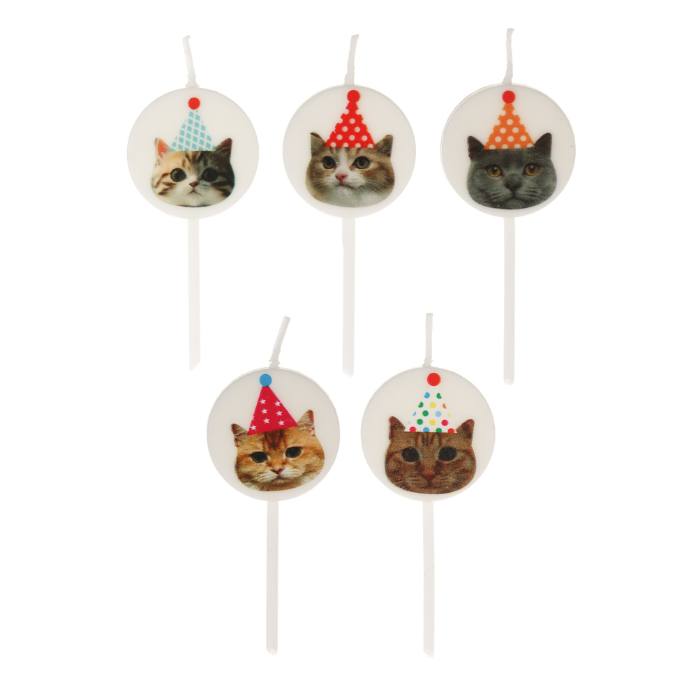 Набор свечей для торта тм Fntastic, 6,5 см, 5 шт, "Коты", парафин