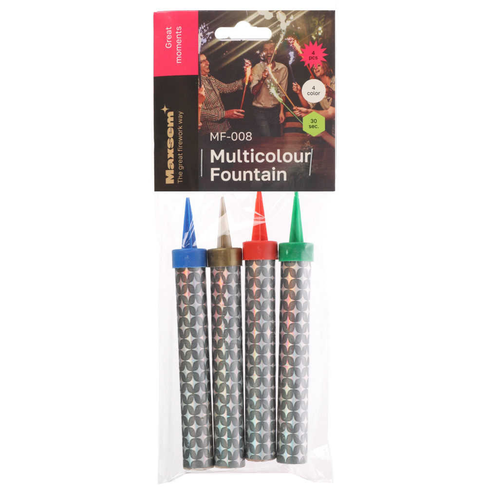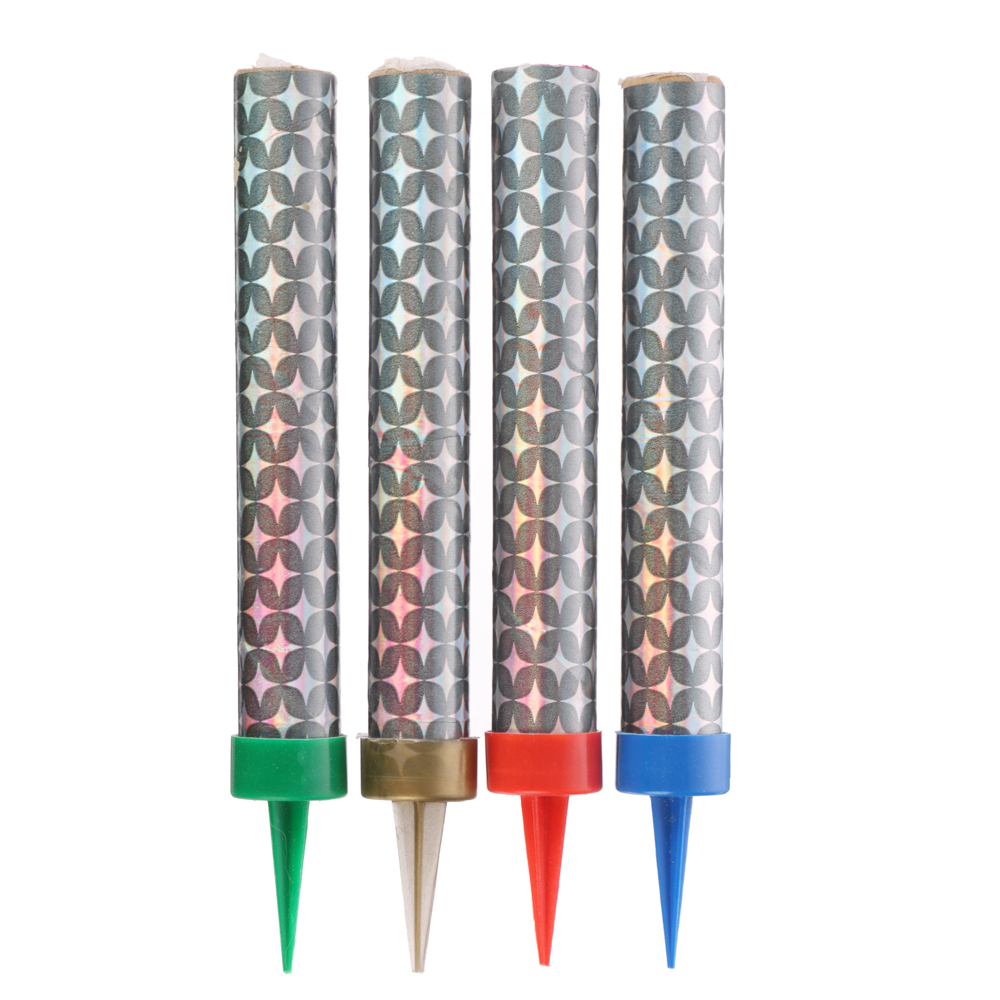 Фонтан свеча для торта, разноцветный поток искр: красн., зелен., синий, желт 10-12,5см. 30сек. 4 шт