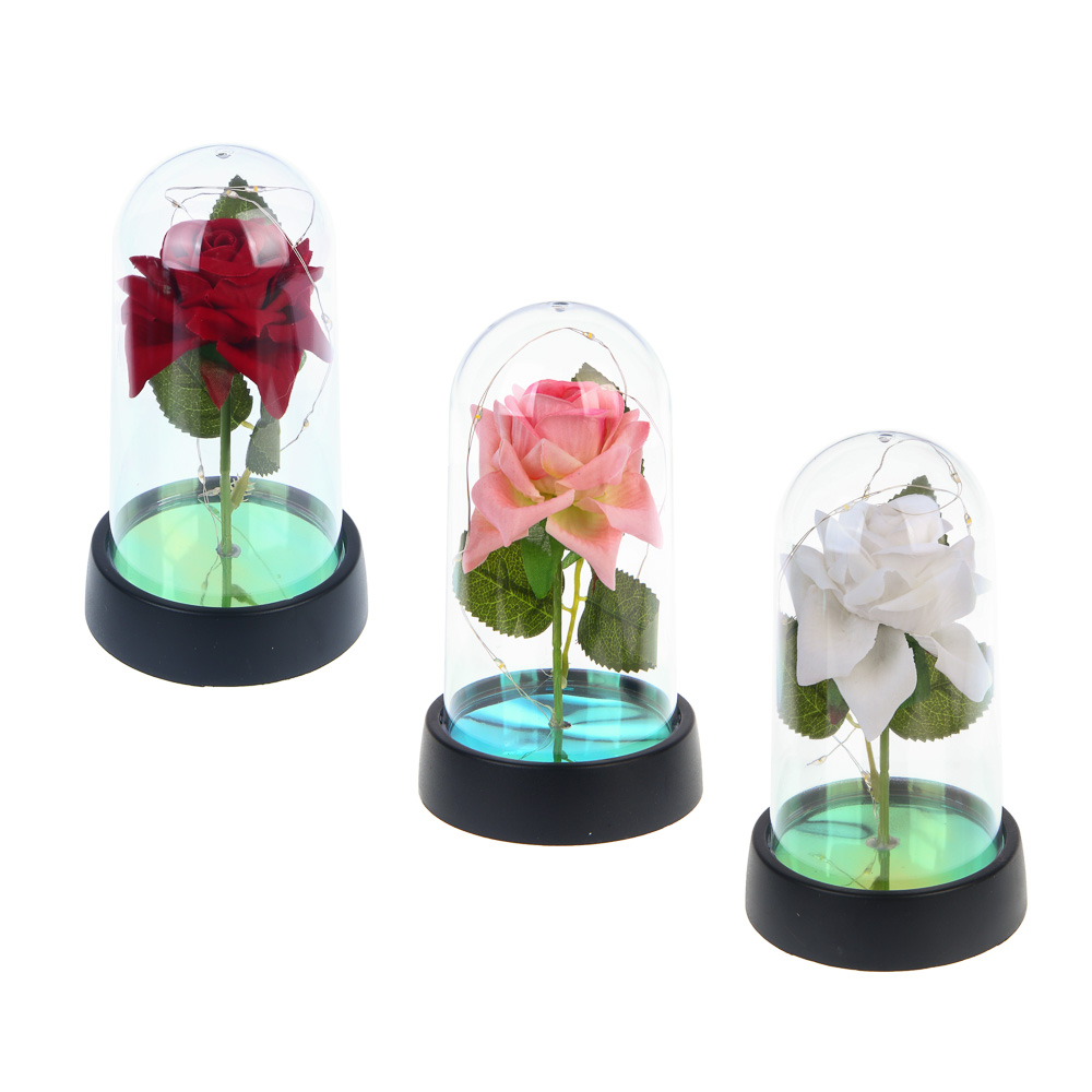 Декор "Роза в колбе" с подсветкой, 15х8х8см, 3хLR1130, ткань, пластик, проволока, 3 вида