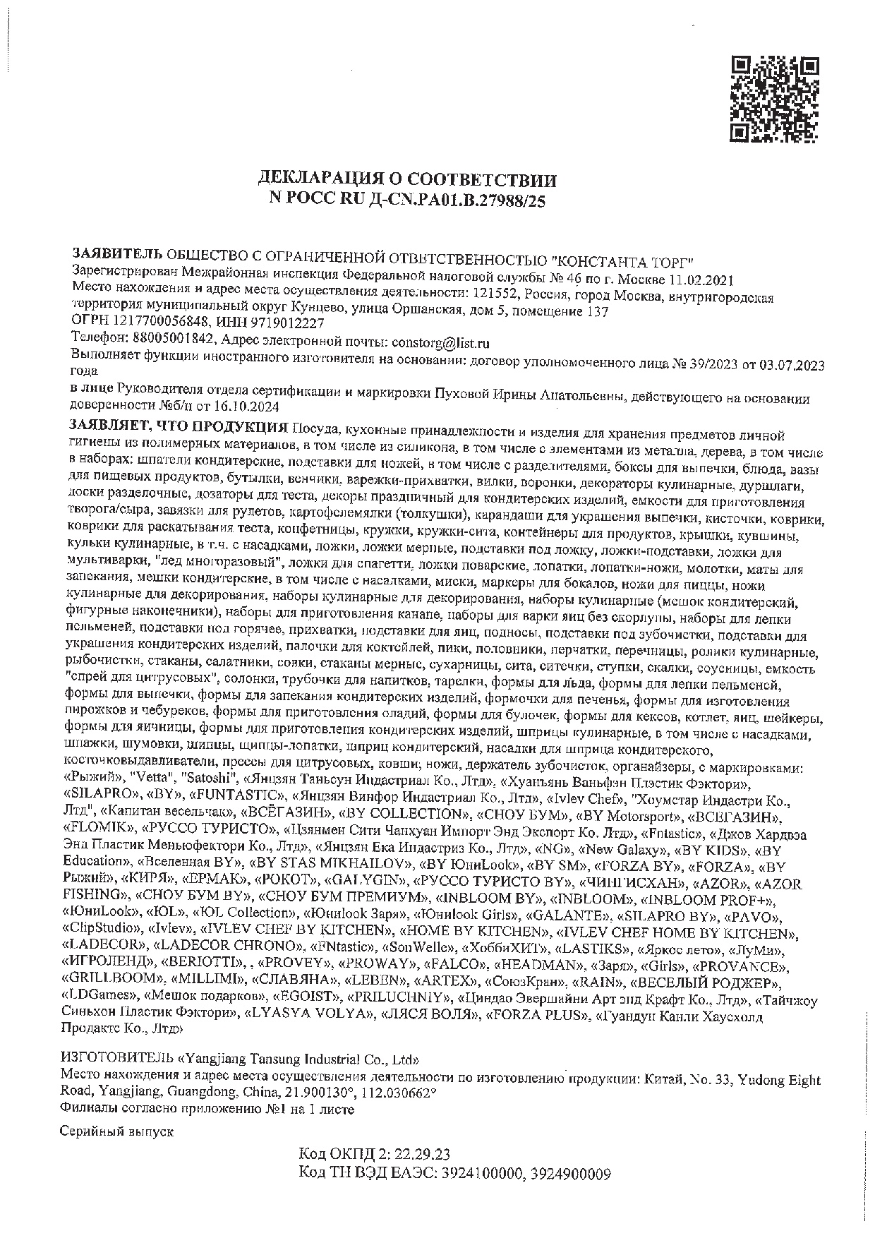 Размер упаковки