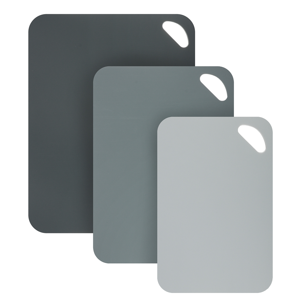 Набор гибких разделочных досок SATOSHI «Виши» с отверстием для переноски или подвеса включает 3 пластиковые доски разных размеров: 38х29 см, 33,5х24 см и 29х19 см. Подходят для нарезки любых продуктов: овощей, фруктов, рыбы и мяса. Сдержанные цвета прекрасно впишутся в любой интерьерный стиль кухни. Гибкие доски позволяют удобно перемещать содержимое в чашку или кастрюлю. Специальное антискользящее покрытие предотвращает скольжение по столу или столешнице. Пластик легко очищается, не накапливает бактерии, а также не снижает остроту заточки ножей.