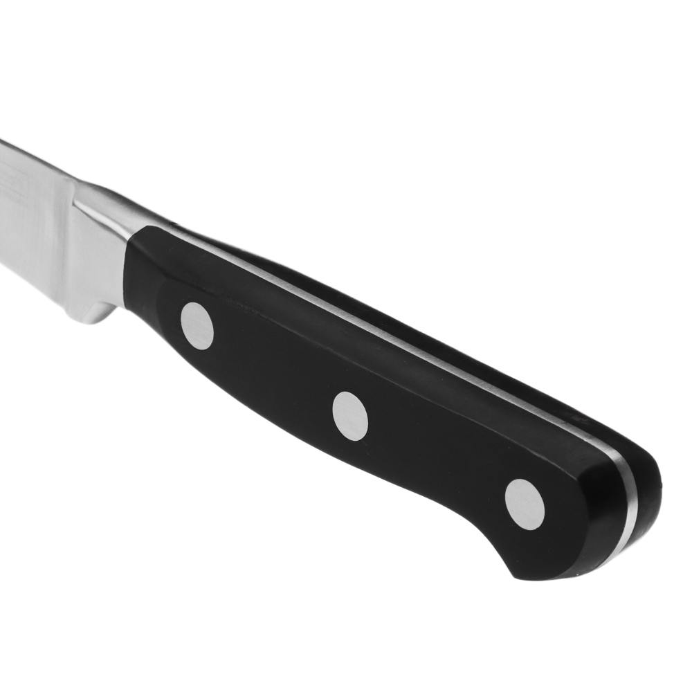 Ищете качественный и надежный нож для нарезки овощей и фруктов? Тогда кованый кухонный овощной нож SATOSHI Старк с длиной лезвия 9 см - идеальный выбор для вас! Маленький нож удобен для нарезки и чистки овощей и фруктов от кожуры. Эргономичная ручка удобно фиксируется в руке, не выскальзывая в процессе использования. Сталь долго держит заточку, не боится коррозии. Имеет строгий стильный дизайн.
