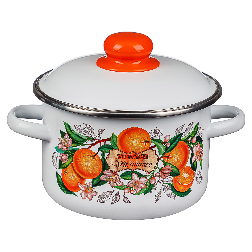 Эмалированная кастрюля Гарден объемом 3 л — это стильная и практичная посуда для вашей кухни. Белый цвет с ярким изображением апельсинов придаст кухне свежий и фруктовый акцент. Кастрюля идеально подходит для приготовления различных блюд, благодаря прочной эмалированной поверхности, которая равномерно распределяет тепло и сохраняет вкус пищи. Она устойчива к коррозии и легко чистится. В комплекте с крышкой для удобства использования. Это отличный выбор для тех, кто ценит долговечность и эстетику в кухонной посуде.