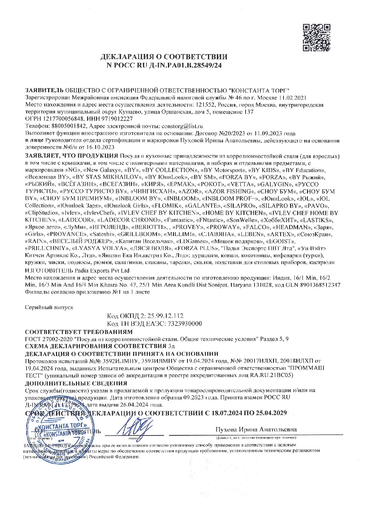Размер упаковки