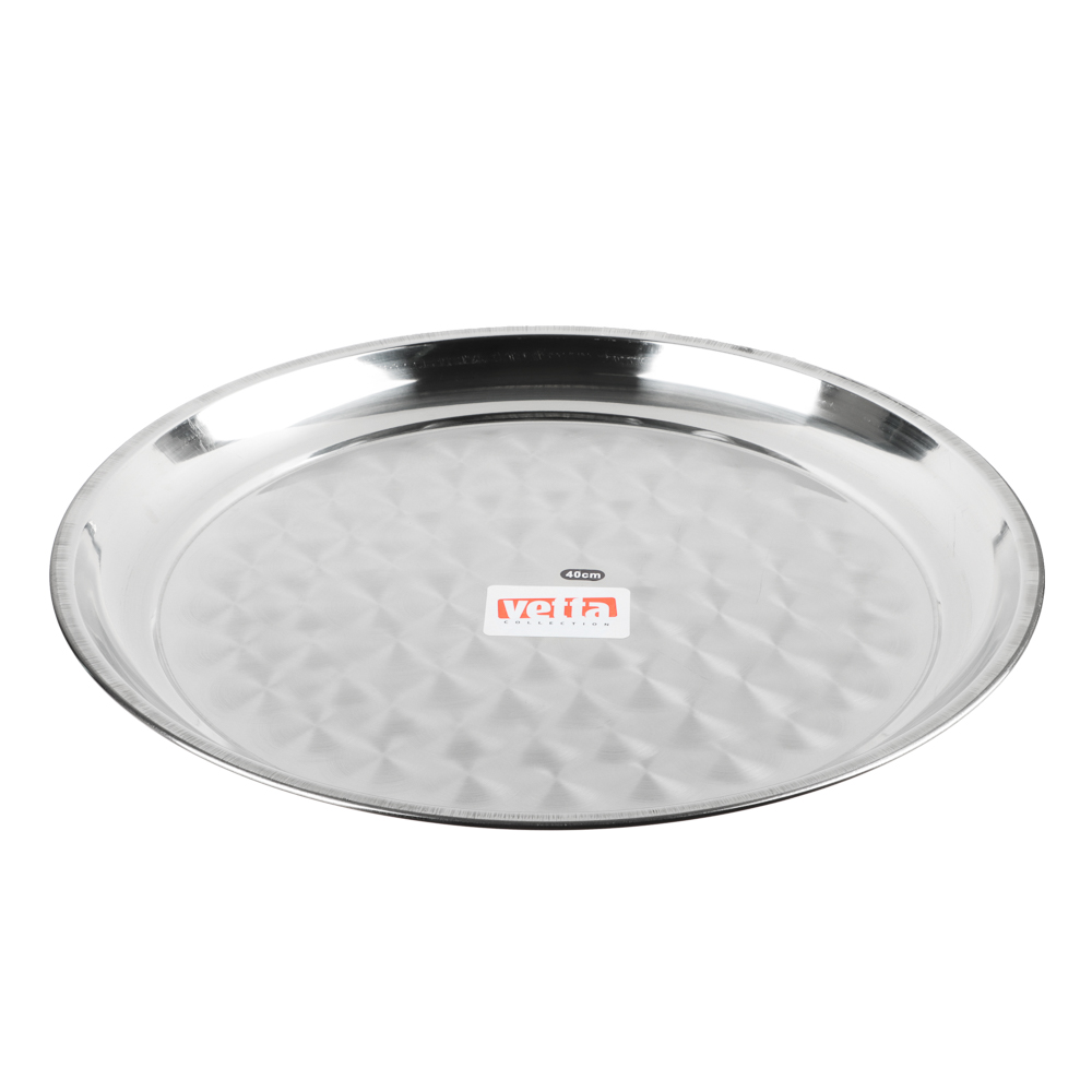 Круглый поднос VETTA диаметром 40 см идеально подходит для подачи блюд, сервировки стола и организации хранения на кухне. Выполнен из высококачественной нержавеющей стали, которая обеспечивает прочность, долговечность и устойчивость к коррозии. По краю подноса проходит каемка, которая предотвращает скольжение предметов и добавляет стильный элемент дизайна. Поверхность легко моется и сохраняет свой первоначальный вид даже после многократного использования.Универсальный дизайн позволяет использовать поднос как для домашнего использования, так и для профессиональных нужд – в кафе, ресторанах и отелях. Благодаря качественным материалам и функциональности, поднос станет незаменимым аксессуаром на вашей кухне.