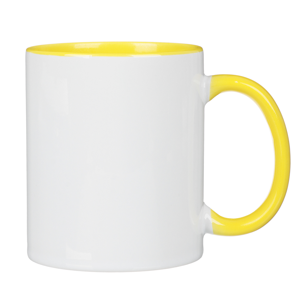 Кружка для сублимации, объем 330 мл, с внутренней поверхностью и ручкой желтого цвета – это посуда для декорирования, которая станет прекрасной основой для ваших творческих задумок. Специальное покрытие на внешней поверхности позволяет наносить любые принты, фото или надписи, обеспечивает чёткую и яркую печать без искажений, превращая обычную кружку в эксклюзивный аксессуар. Объем 330 мл – это универсальный вариант для утреннего кофе, ароматного чая или какао. Отличный подарок для творческих экспериментов.