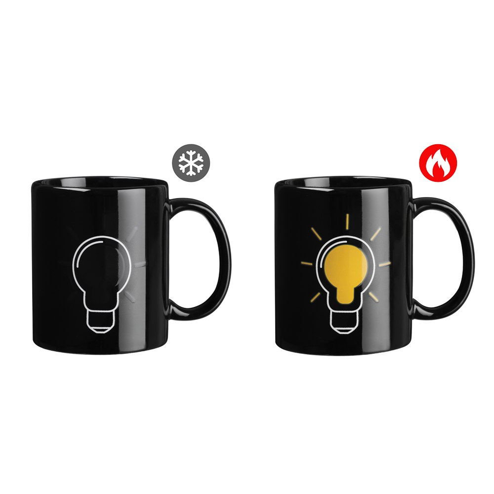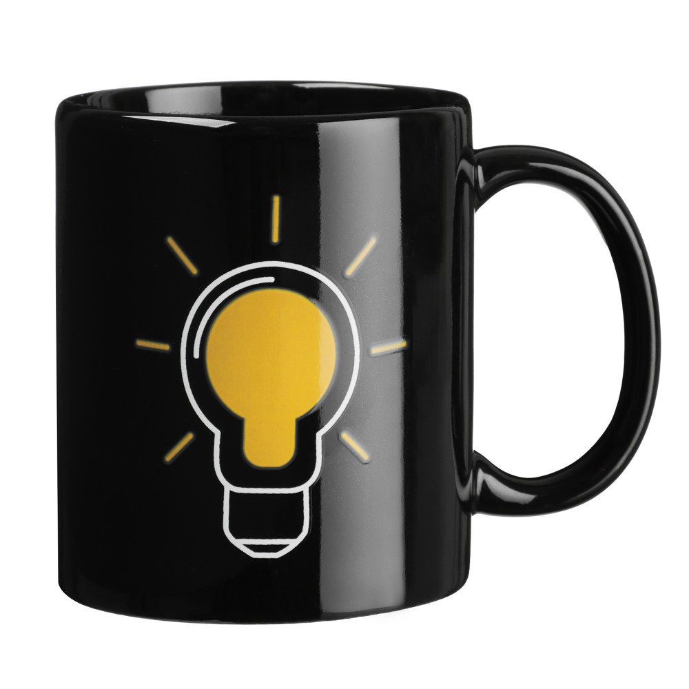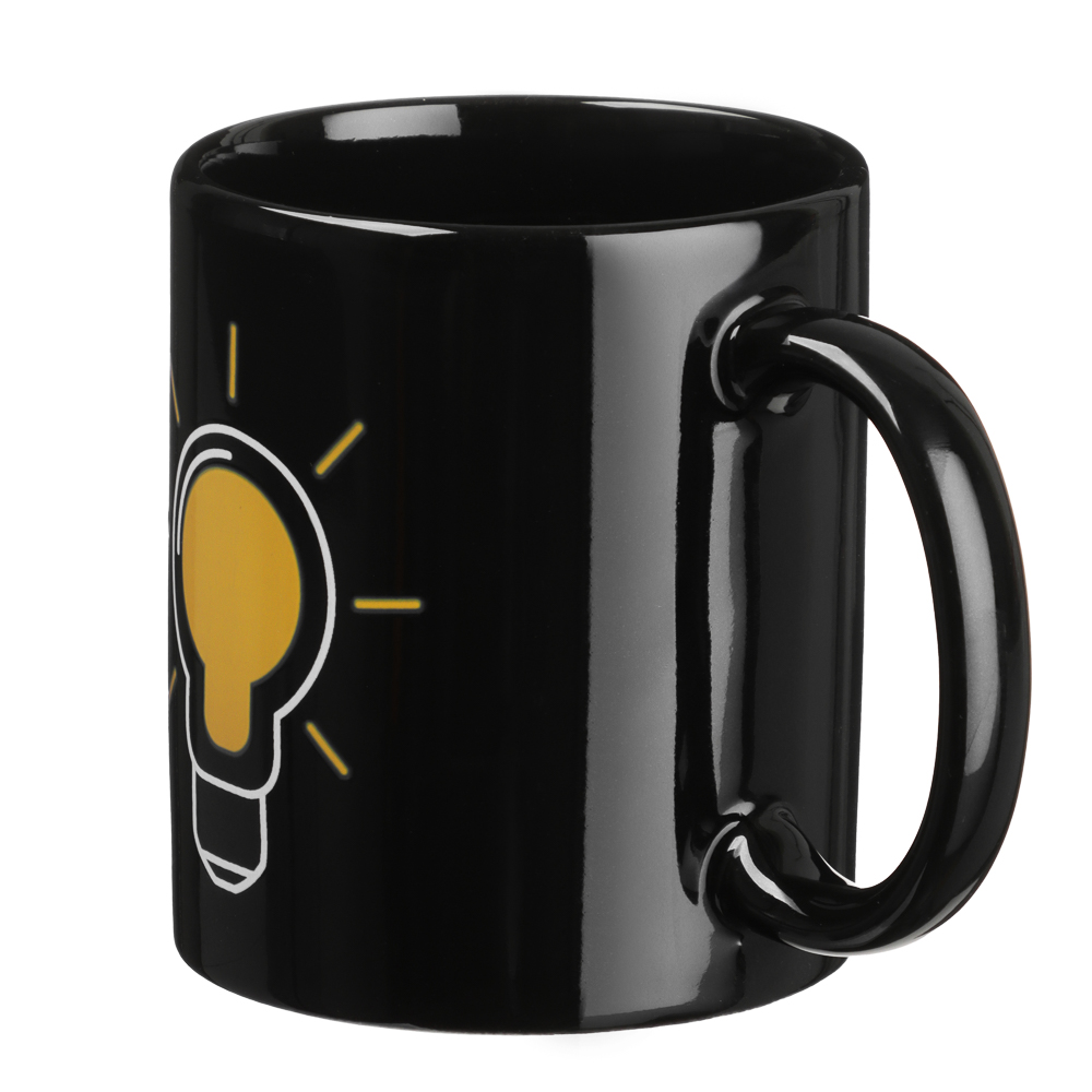 Керамическая кружка 350 мл MILLIMI Лампочка — зажги идею вместе с утренним кофе! Эта кружка превратит обычное чаепитие в момент волшебства. Объём 350 мл идеален для любимых напитков: ароматного кофе, чая или какао. Но главный сюрприз ждёт вас, когда вы нальёте горячее — на чёрном фоне кружки загорается яркая жёлтая лампочка благодаря термочувствительному покрытию! Кружка изготовлена из качественной керамики, которая долго сохраняет тепло и приятна на ощупь.