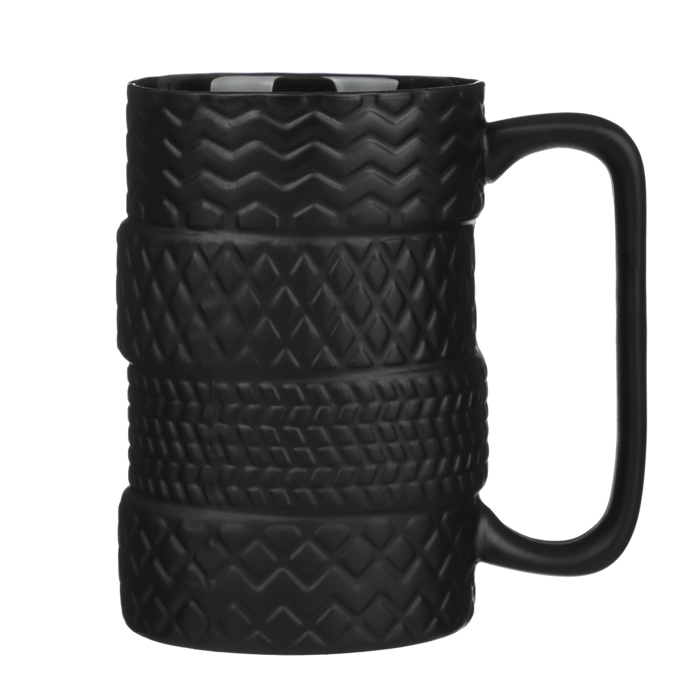 Кружка 380 мл, тм MILLIMI «Шины» черного цвета из фарфора – это замечательный подарок для мужчины, который украсит рабочий стол, а также будет интересно смотреться на домашней кухне. Кружка с фактурой поверхности в виде автомобильных шин понравится ценителям нестандартного дизайна. Толстые стенки из фарфора сохраняют температуру напитка, позволяя наслаждаться неспешным чаепитием. Большая удобная ручка обеспечивает комфортный захват.