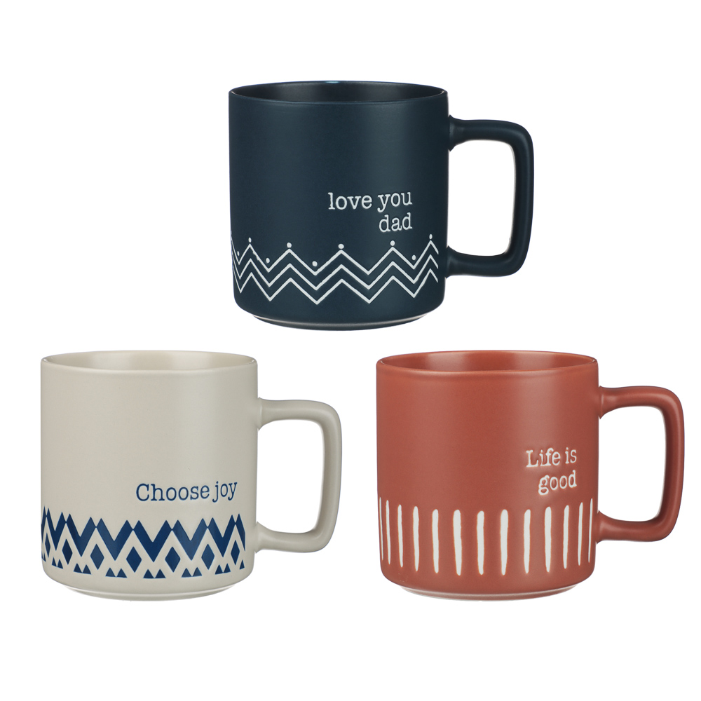 Кружка тм MILLIMI «Графика», объем 350 мл – это отличный выбор для повседневного чаепития дома или на работе. Устойчивая кружка с широким основанием и большой ручкой имеет стильный современный дизайн с матовой поверхностью и ненавязчивым орнаментом. Позитивная надпись будет поднимать настроение даже в самый серый и будничный день. Кружка выполнена из качественного фарфора, имеет толстые стенки, долго сохраняет тепло напитка, поэтому прекрасно подходит для неспешного чаепития. Хороший вариант подарка для мужчины. 3 дизайна в ассортименте.