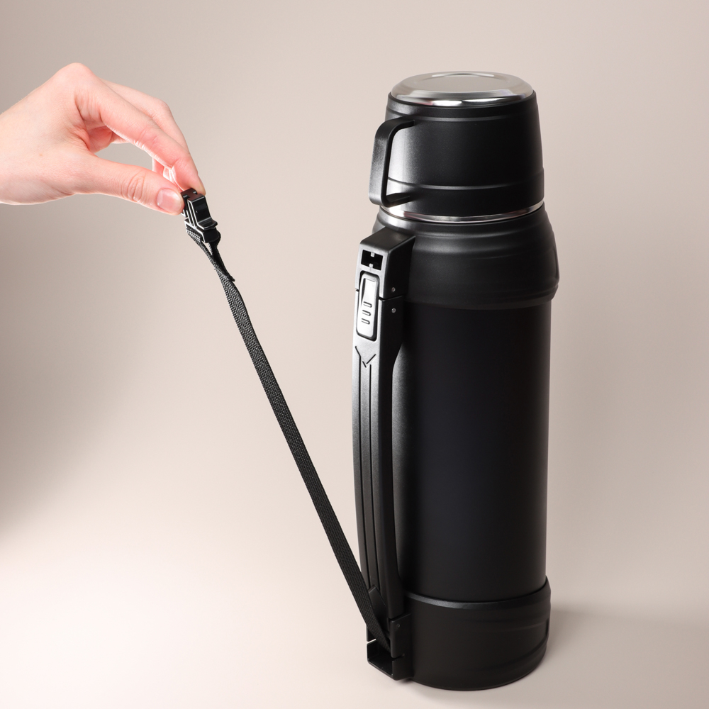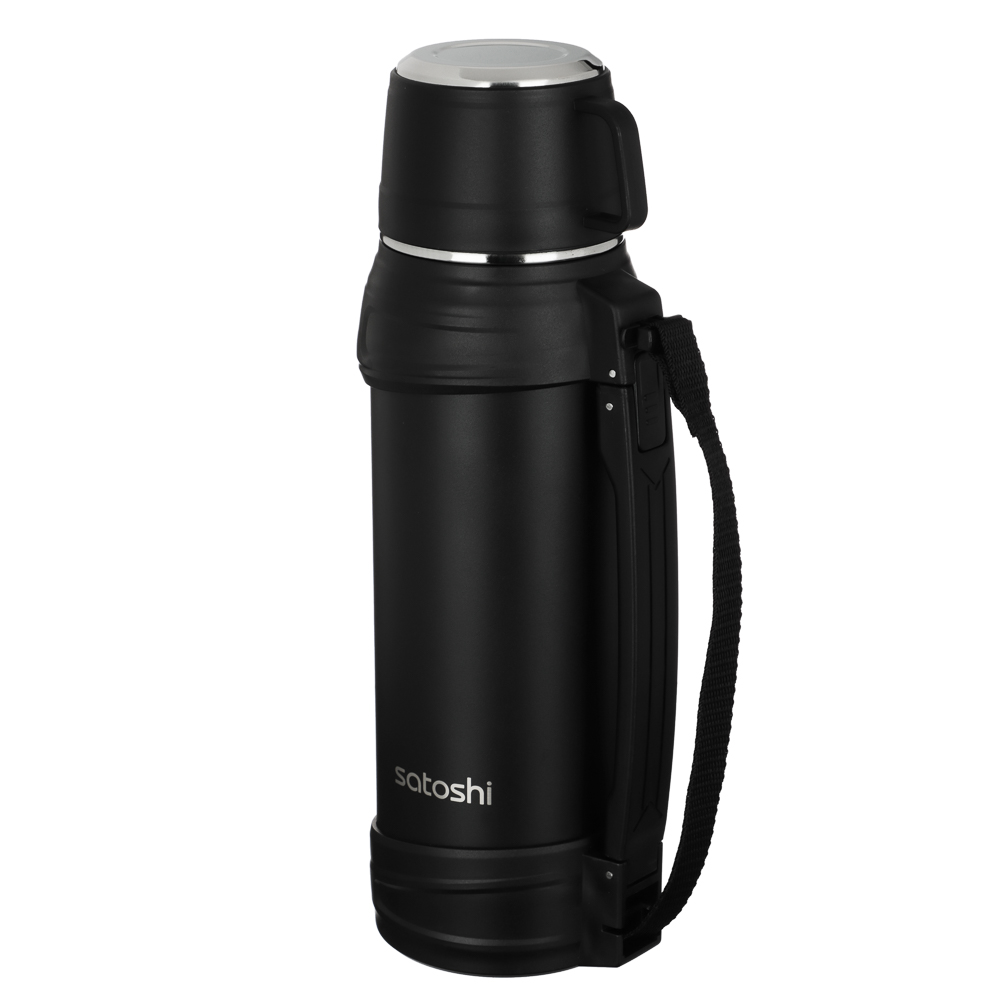 Термос с широкой горловиной SATOSHI Акка объемом 1,2 л выполнен из высококачественной нержавеющей стали 18/10. Материал устойчив к механическим повреждениям, не меняет вкус и аромат напитков. Двойные стенки корпуса эффективно сохраняют температуру напитка до 12 часов, позволяя наслаждаться горячим чаем или кофе в течение длительного времени. Удобная система открывания и наливания без потери температуры делает использование термоса максимально комфортным. Дополнительный ремень для удобной переноски позволяет брать термос с собой в любые поездки и путешествия. А крышку можно использовать как чашку с ручкой, что делает этот термос ещё более функциональным. Широкая горловина облегчает процесс наливания напитков и добавления в них ингредиентов. Благодаря компактным размерам, термос легко поместится в сумку или рюкзак. Благодаря качественному исполнению и материалам, термос будет служить вам многие годы, сохраняя первоначальные свойства и внешний вид.