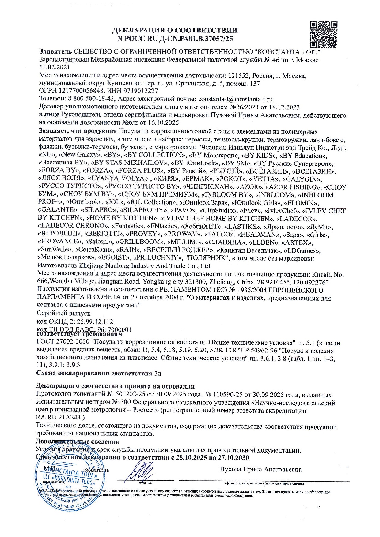 Размер упаковки