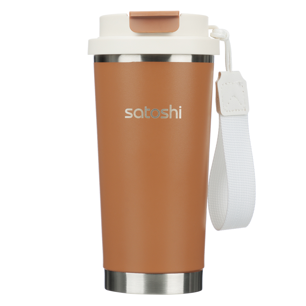 Термос-кружка 500 мл SATOSHI Старс – стильный и практичный аксессуар для любителей горячих и холодных напитков в любых условиях. Изготовлена из нержавеющей стали 18/10 с двойными стенками, которые обеспечивают длительное сохранение температуры содержимого: до 12 часов. Коричневый корпус с матовым покрытием выглядит элегантно и устойчив к царапинам. Удобная крышка с отверстием для питья позволяет наслаждаться напитком без необходимости полностью открывать термос. Ремешок обеспечивает комфортное ношение, а совместимость со стандартными автомобильными держателями делает кружку идеальным спутником в дороге. Подходит для кофе, чая, воды и других напитков. Объем 500 мл – оптимальный размер для повседневного использования. Отличный выбор для офиса, путешествий, пикников и активного образа жизни.