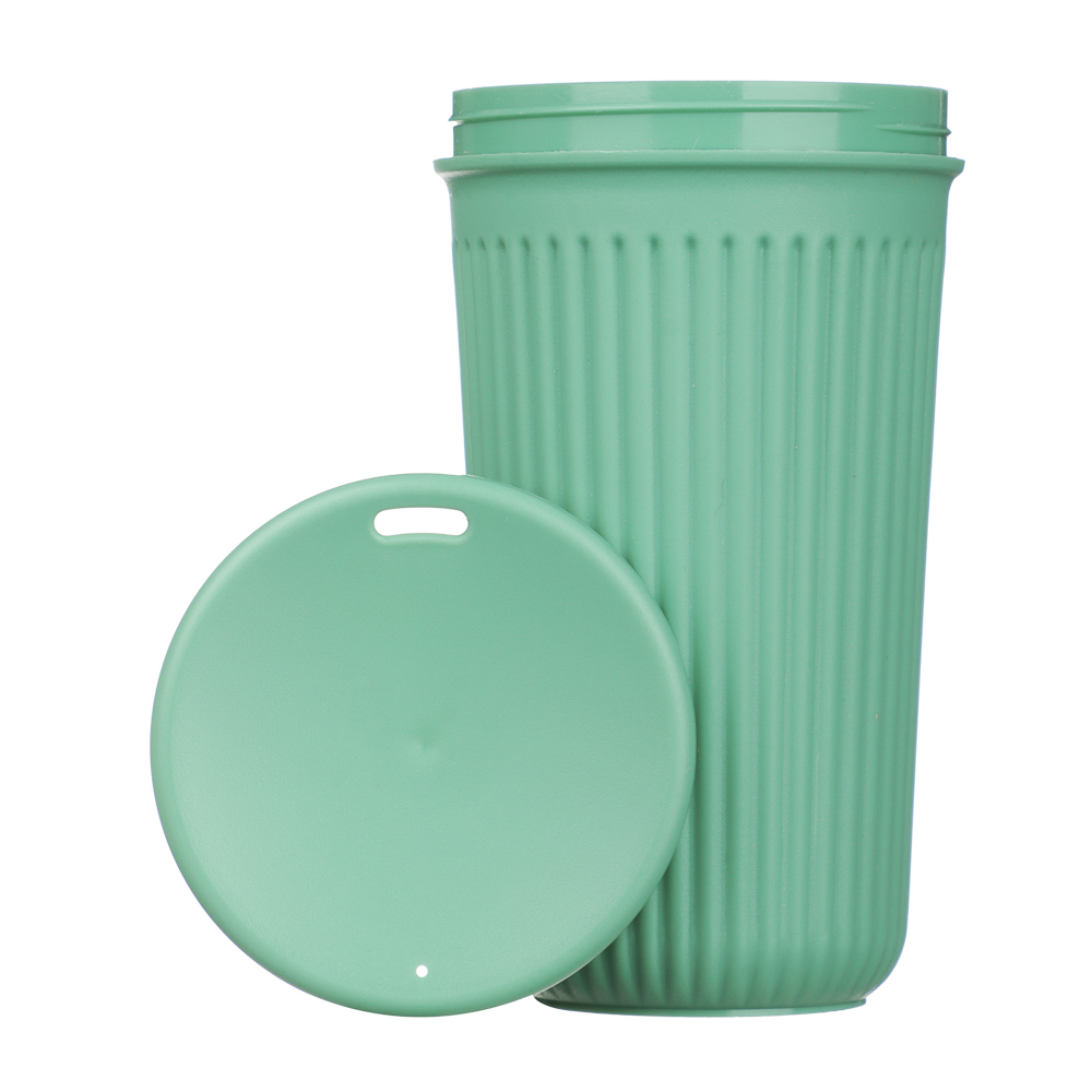 Стакан пластиковый с закручивающейся крышкой 400мл, пластик, 3 цвета