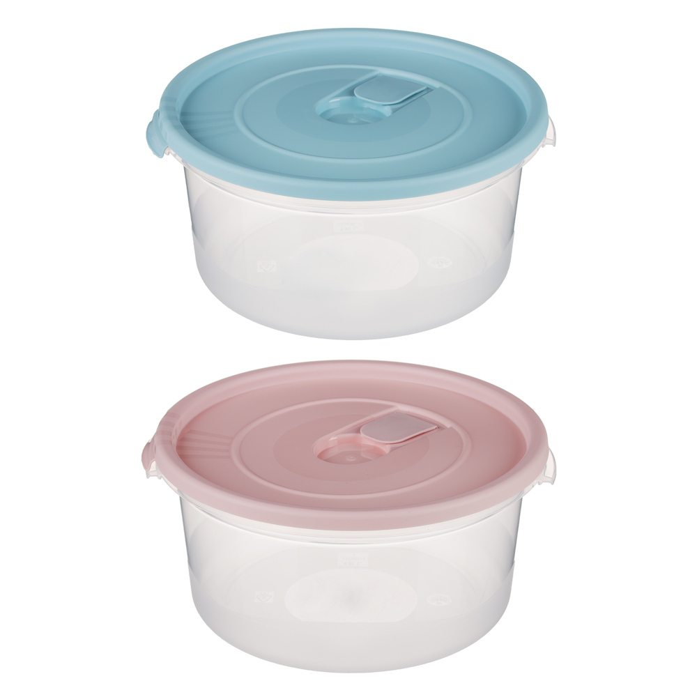 Контейнер круглый для СВЧ с крышкой, пластик, 1,6л, D-19см, H-9,5см, 2 цвета