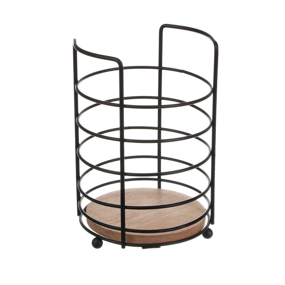 Подставка под столовые приборы Vetta из углеродистой стали, размер 11,2х12,8х16,1 см – это практичное и стильное решение для хранения столовых приборов на домашней кухне. Устойчивая подставка имеет современный лаконичный дизайн с деревянным основанием и металлическим корпусом, красиво смотрится на столешнице, гармонично вписываясь в интерьер кухни. Углеродистая сталь устойчива к деформации, а специальное покрытие защищает изделие от коррозии. Подставка вмещает большой набор приборов: ложки, вилки, столовые ножи, а также подходит для хранения кулинарных лопаток.