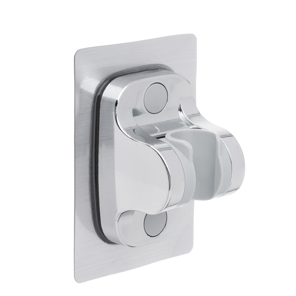 Держатель для лейки душа настенный самоклеящийся предназначен для крепления на гладких предварительно очищенных поверхностях стен в ванной комнате или в душевой кабине. Используется для фиксации душевой лейки. Изготовлен из прочного пластика, устойчивого к механическим повреждениям и образованию трещин. Серебряное покрытие надежное и устойчивое к царапинам. Держатель не подвержен коррозии, легко очищается от отложений и разводов. Надежно фиксируется на кафельной плитке и деревянных поверхностях.