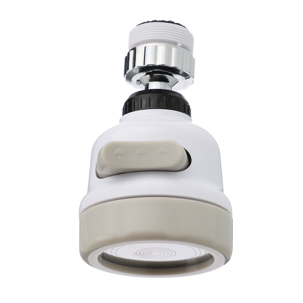 Аэратор закрепляется на носике крана и служит для ограничения потока воды без снижения интенсивности струи. Вода, проходя через несколько сеток устройства, смешивается с воздухом - на выходе получается визуально мягкая струя. Благодаря тому, что подмешивание воздуха в аэраторе происходит постоянно, давление в смесителе кажется неизменным, несмотря на то, что расход воды уменьшается. Обладает тремя режимами подачи воды.