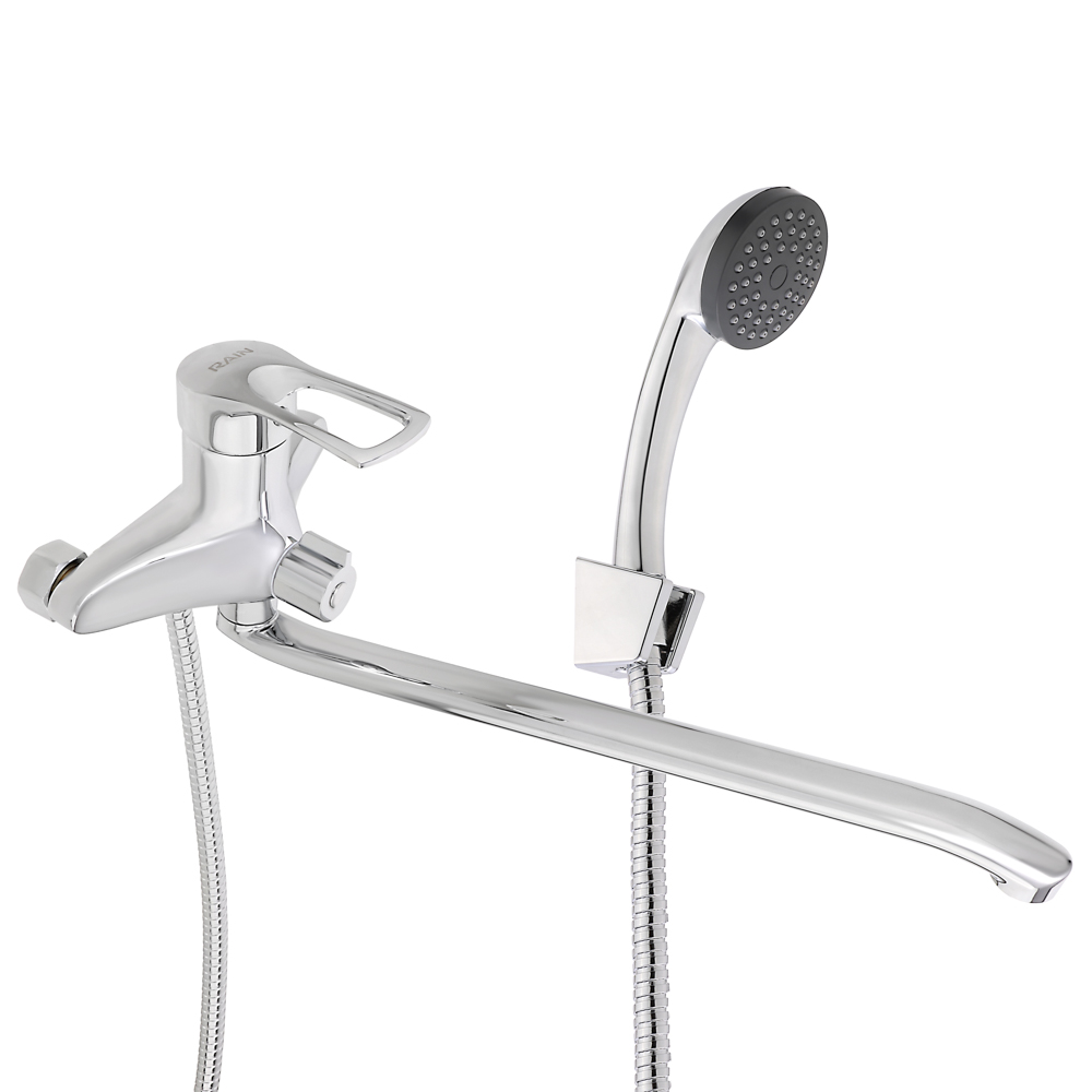 RAIN Смеситель для ванны Атриа, плоский излив 40см, душ. набор, картридж 40мм, латунь, хром