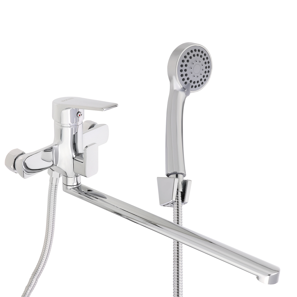 RAIN Смеситель для ванны Лазурит, прямой излив 35см, картридж 35мм, с душ. набором, латунь, хром