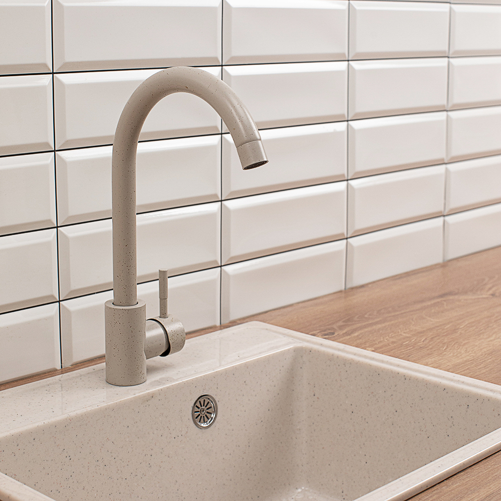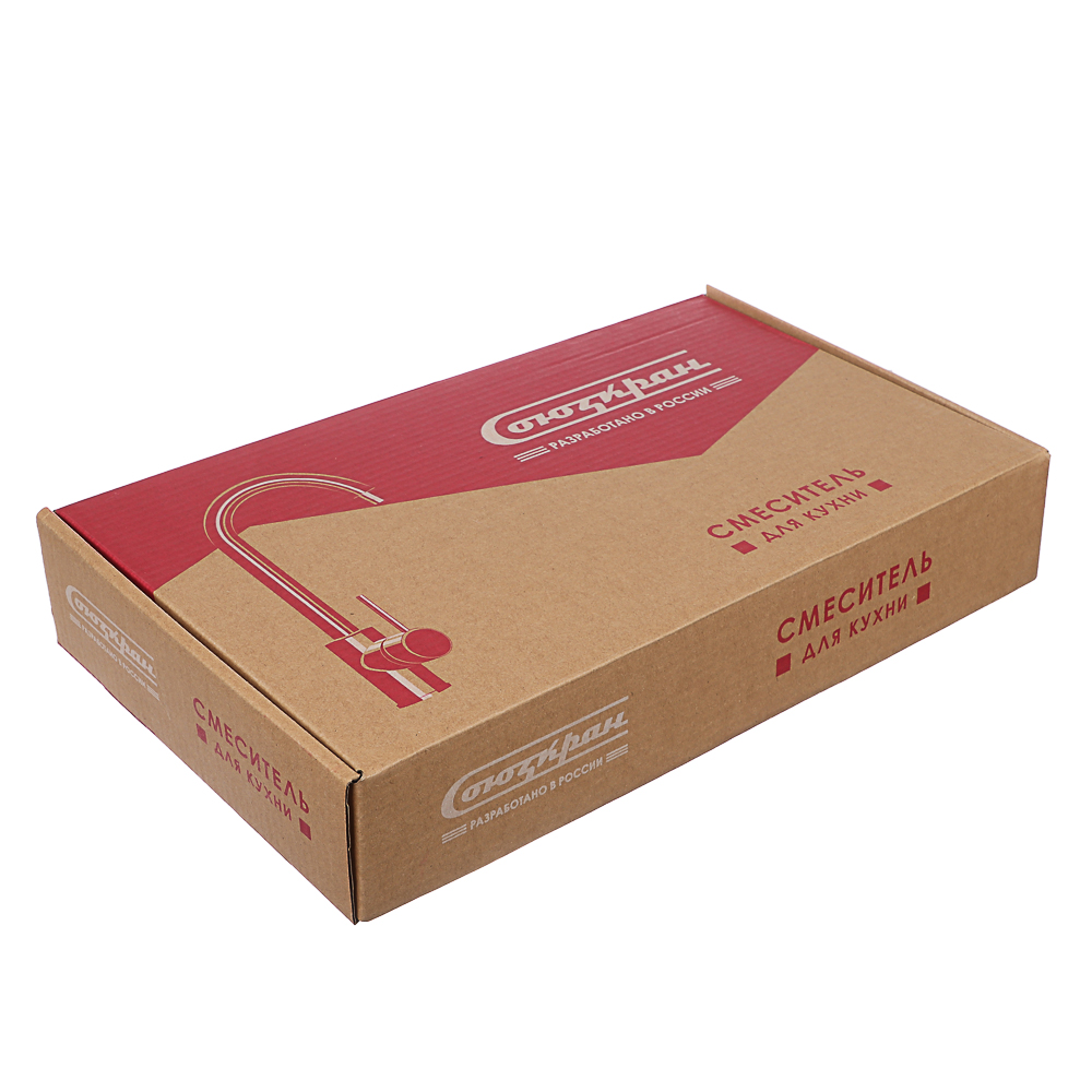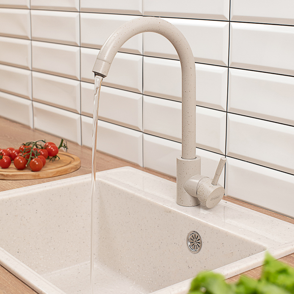 СоюзКран Смеситель для кухни, поворотный излив, керам. картридж 35мм, бежевый, нерж. сталь, SS01-R13