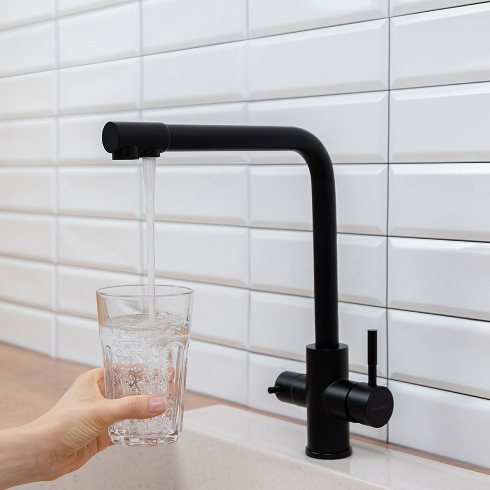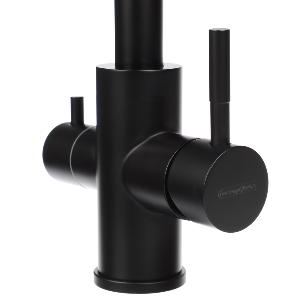 СоюзКран Смеситель для кухни с фильтром для пит. воды, картридж 35мм, нерж. сталь, черный SS01-G132